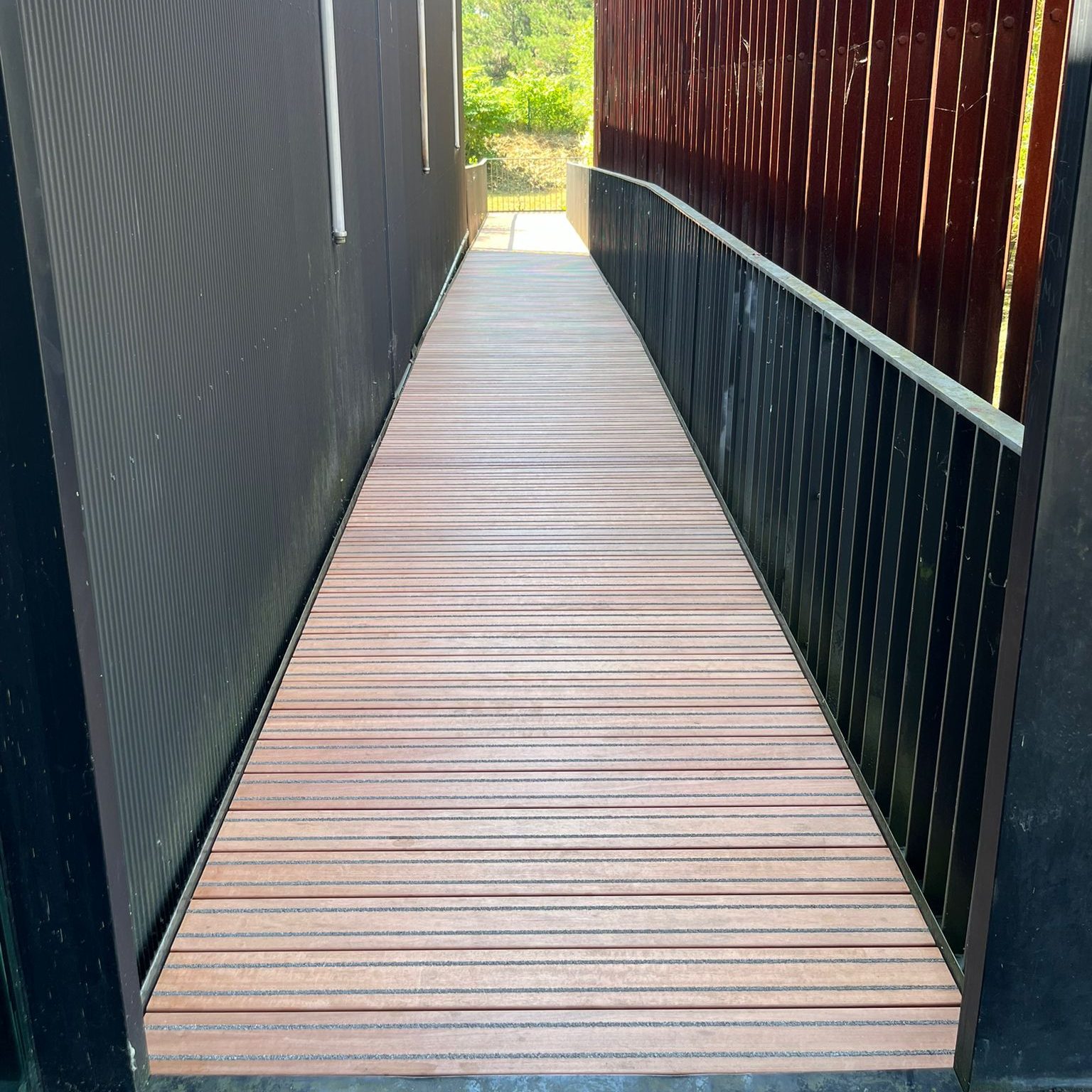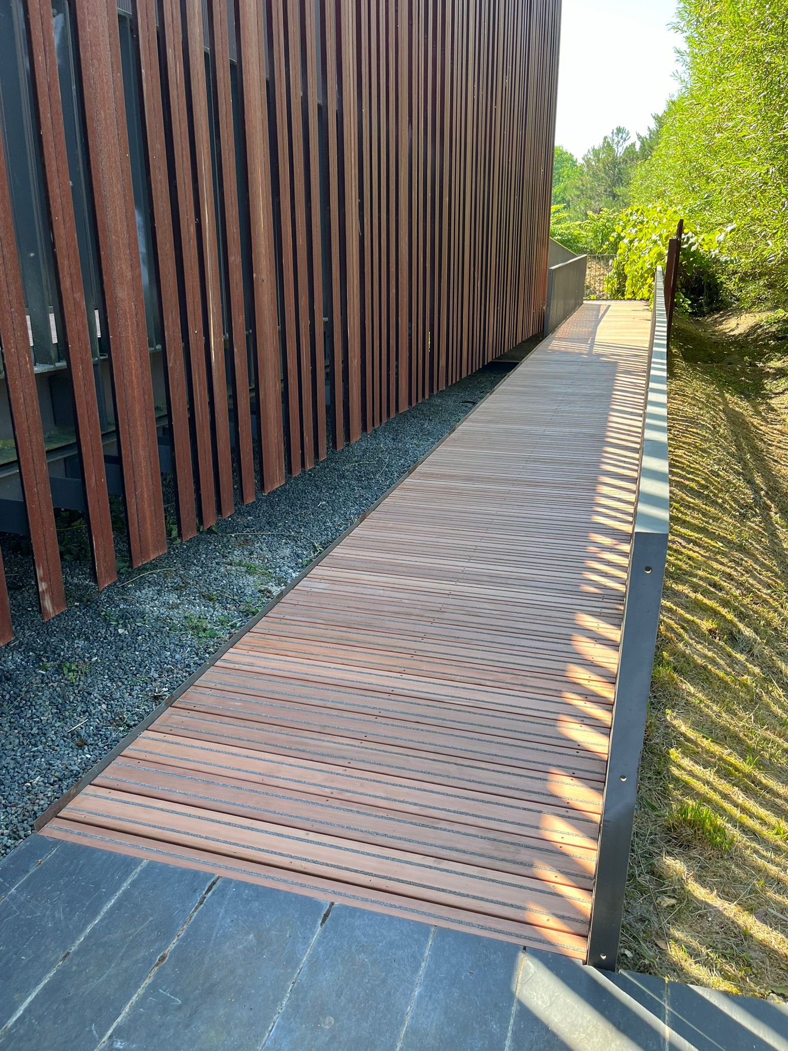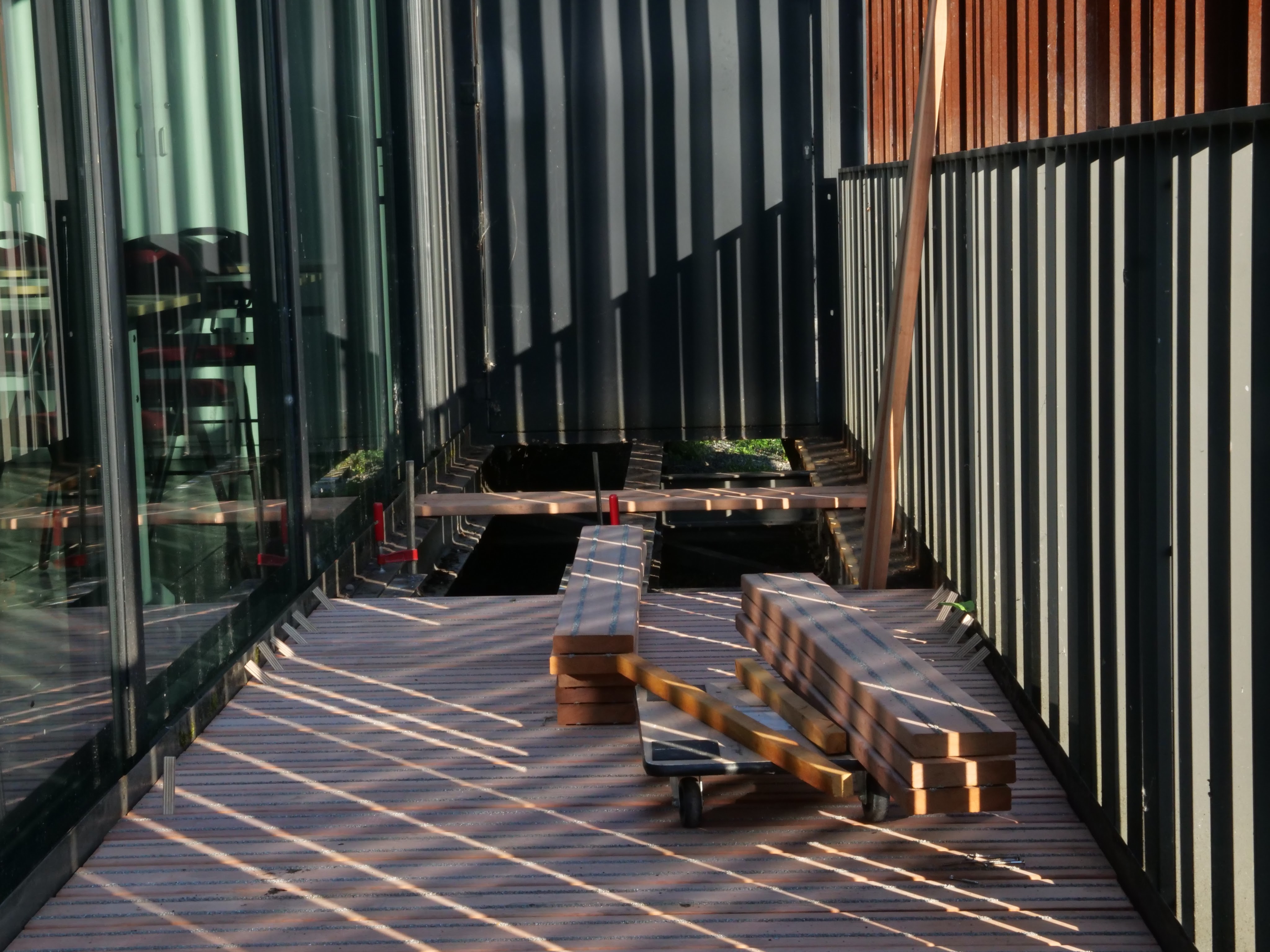 Cette terrasse de près de 40m de long est située au coeur du centre d’examen de Permis de conduire de Genevilliers. Un lieu de passage et de détente pour celles et ceux qui y travaillent. Le défi a résidé dans l’ampleur de cette terrasse et la précision des finitions.