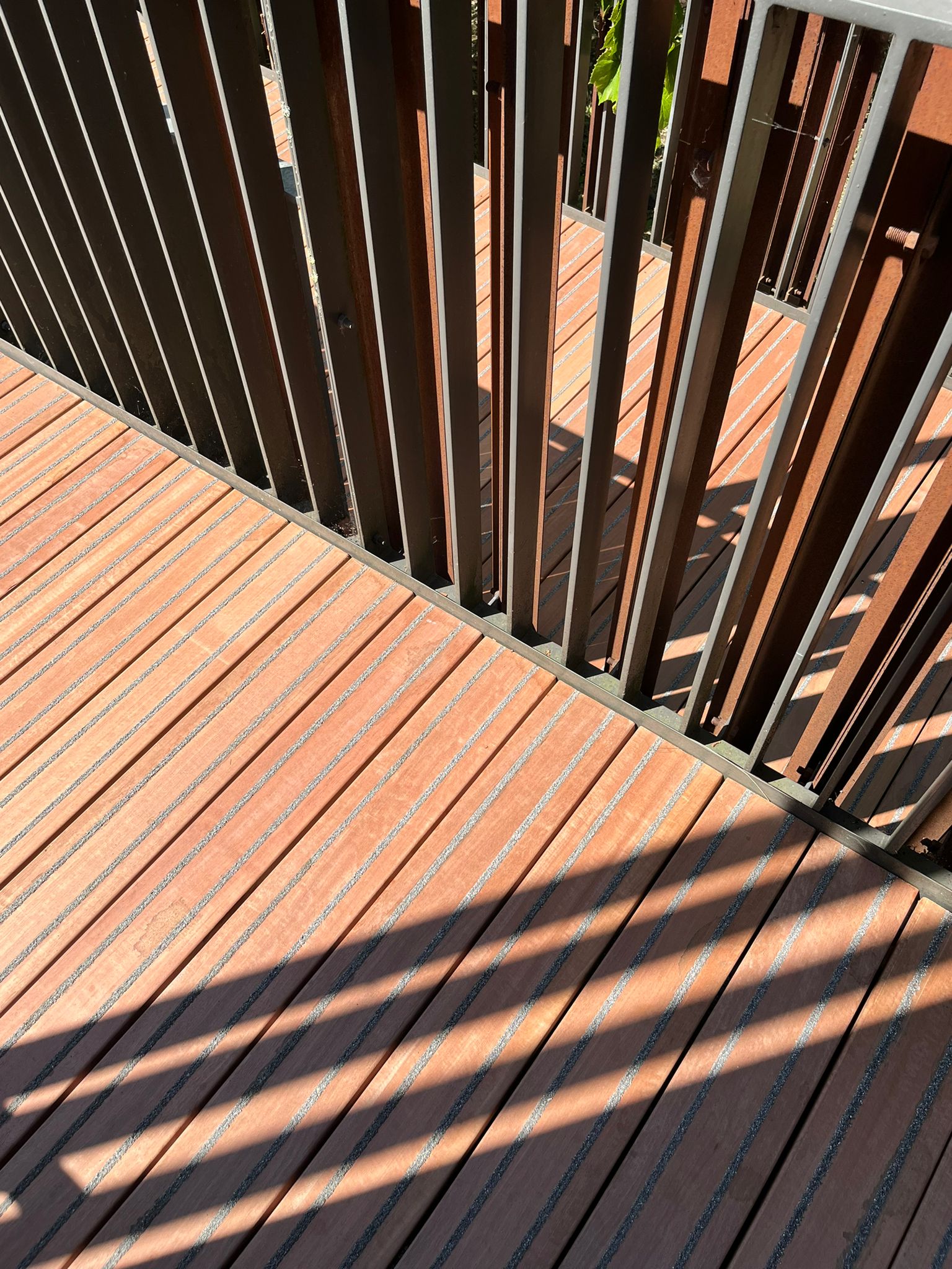 Matériaux : bois exotique Cumaru avec incrustation anti-dérapante